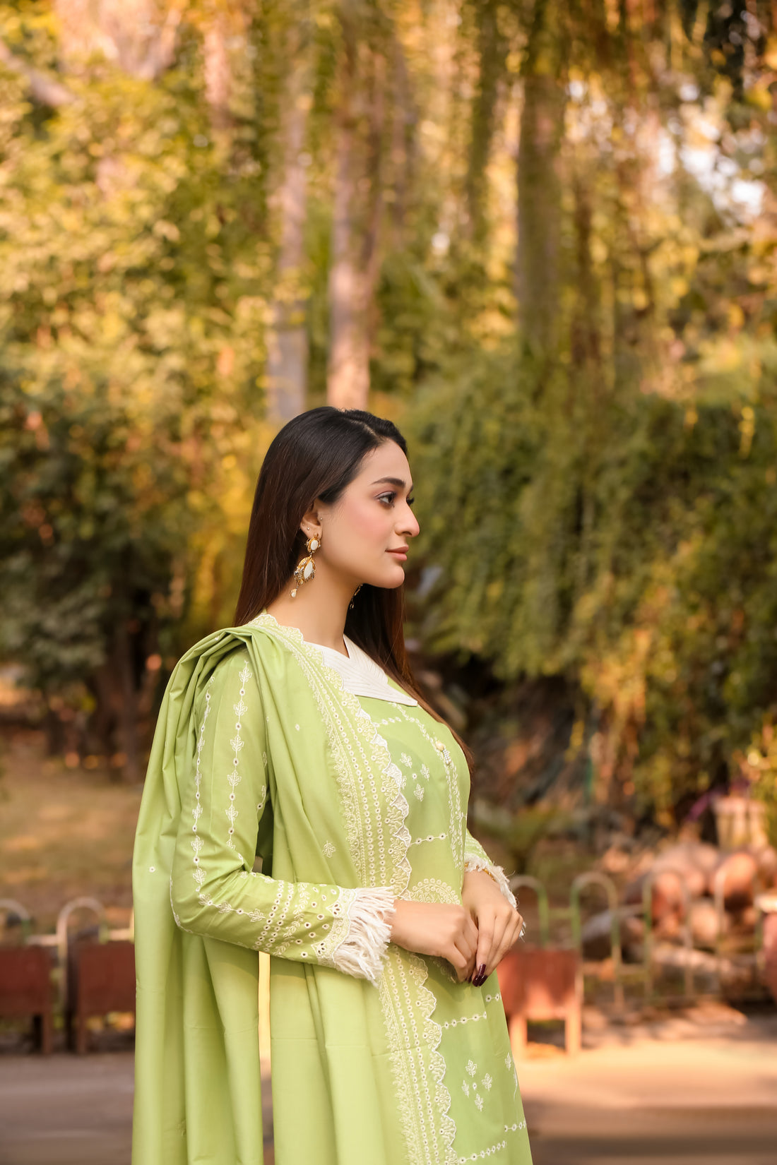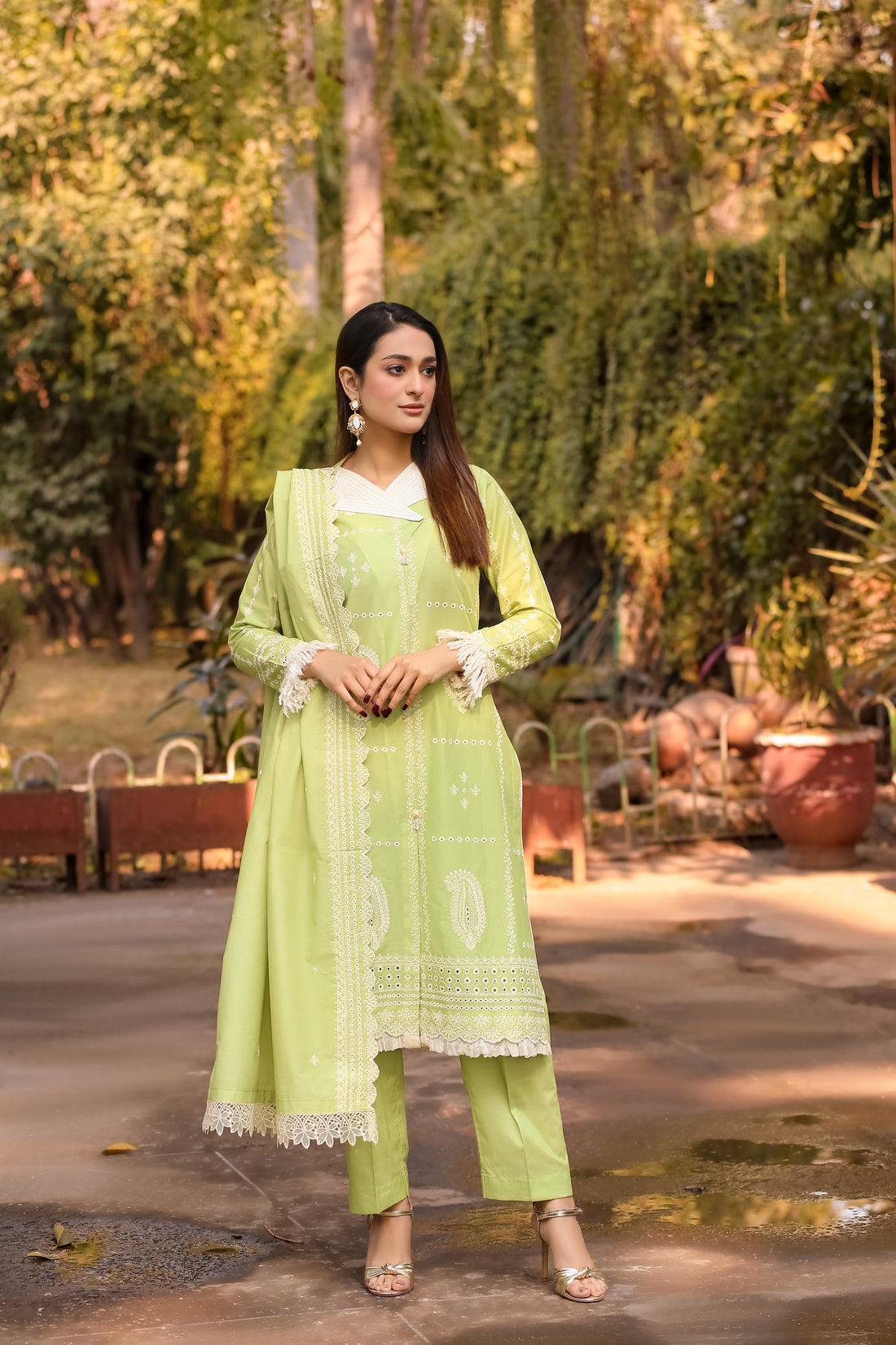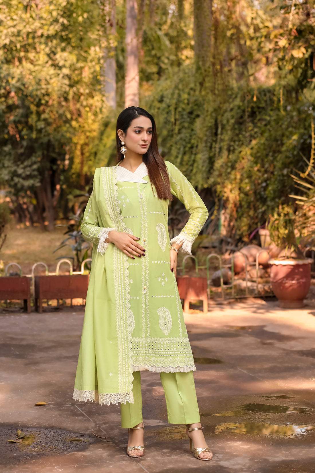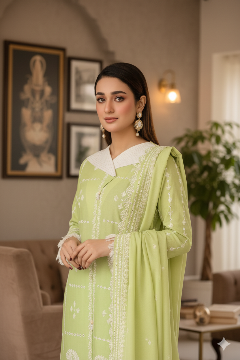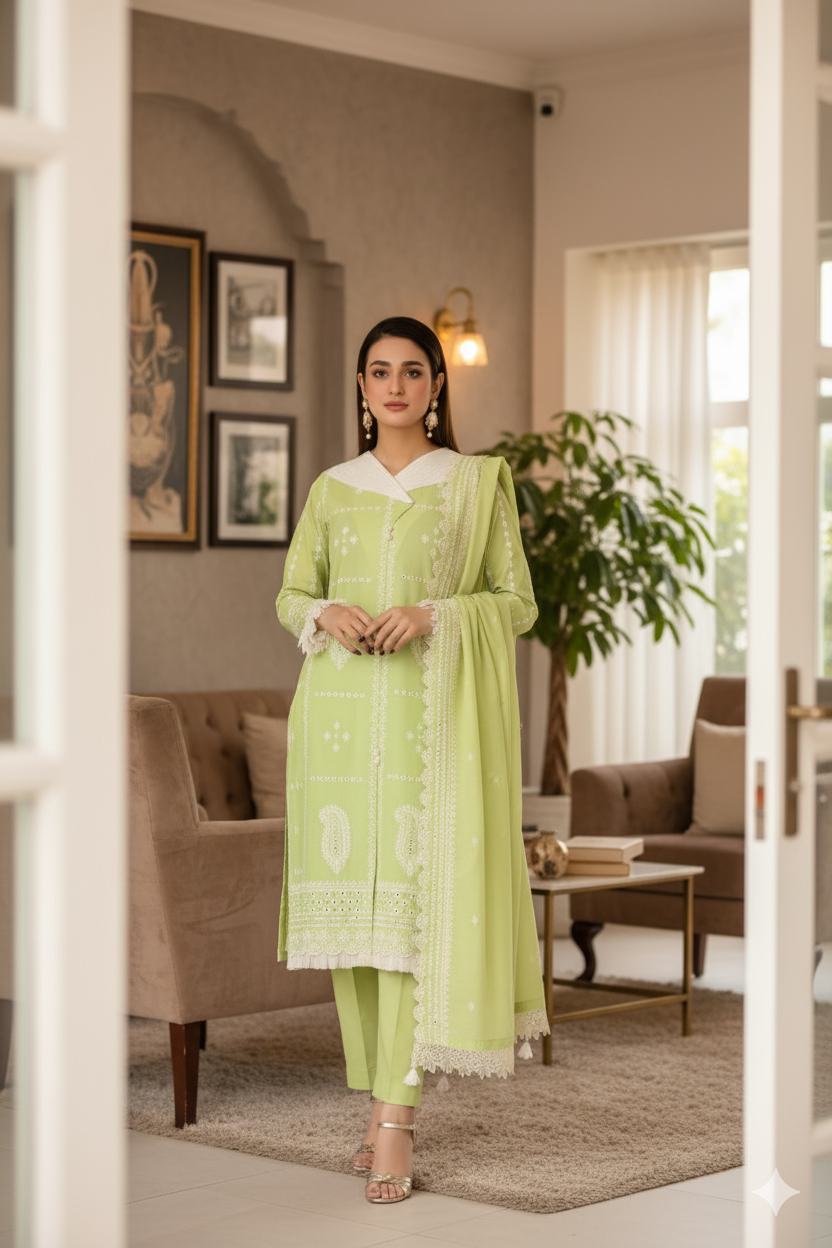 Saadia Ahmed LWSU-25CK301 ChikanKari Lime Green
