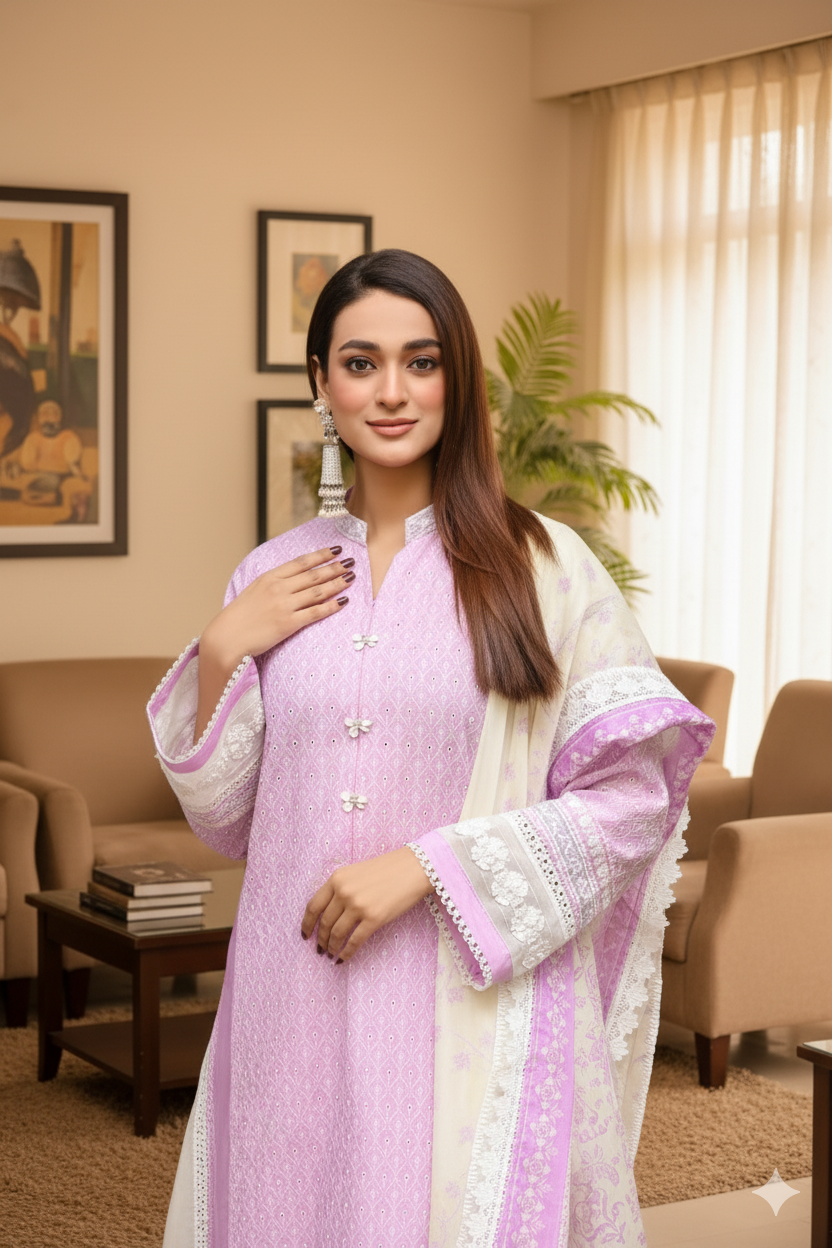 & Free Shipping order more than 10,000Saadia Ahmed LWSU-25CK302 ChikanKari Lilac